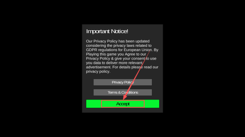 1、接受隐私政策:启动游戏后,阅读并接受隐私政策,点击“Accept”按钮继续。