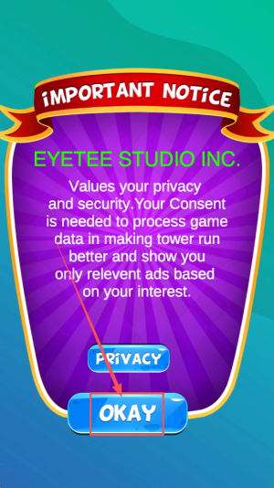 1、同意隐私:首先打开游戏,阅读隐私说明,点击“OKAY”按钮进入主界面。