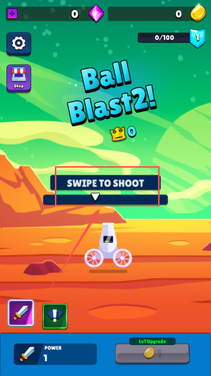 2、发射弹球:在关卡界面,按照“SWIPE TO SHOOT”提示滑动屏幕,发射弹球击破目标。