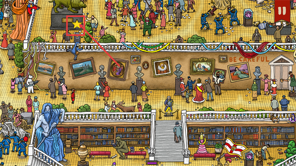 4、定位场景上方的【黄色星星】标识,点击标记区域完成收集,积累此类道具以解锁后续内容。