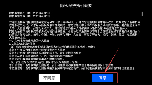1、接受隐私政策:在游戏启动界面,阅读并点击“同意”按钮接受隐私政策。
