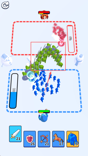抽签战术以橡皮人为主角的策略对战手游。游戏采用经典且清新的3D卡通风格,画面整洁明快。你将在游戏中操控不同颜色的橡皮小人进行对决,通过点击屏幕便可部署多样化的兵种,构筑你的专属防线。战斗的关键在于根据敌方阵容,即时选择具有克制效果的兵种进行应对,并灵活调度以避开潜在危险。你需要迅速击垮对方的防线,瓦解其攻势。