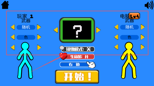 2、设置玩家:在玩家设置界面,选择玩家的武器和颜色,调整生命条和游戏难度。