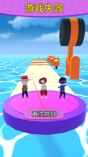 4、再次挑战:当画面出现“游戏失败”提示,点击“再次挑战”按钮,立即重新开始新一轮闯关。