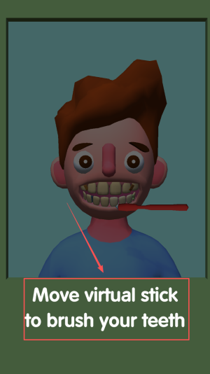 4、完成操作:当画面显示“Move virtual stick to brush your teeth”,拖动虚拟摇杆,完成刷牙动作即可通关。