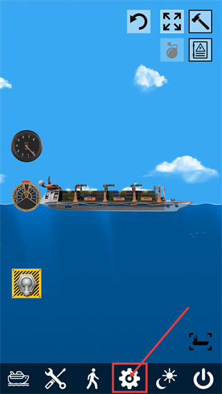 1、点击底部【齿轮图标】可进入设置界面,同时通过表盘关注船只运行参数,确保状态稳定。