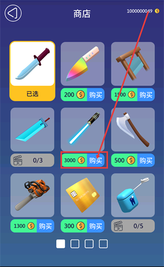1、在商店中可消耗【3000-$】购买新刀具,不同刀具适配不同切割场景,可按需解锁提升效率。