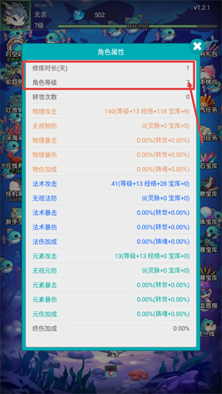 3、查看【角色属性】面板,了解【物理攻击】【法术攻击】等数值构成,针对性提升对应系统来强化属性。