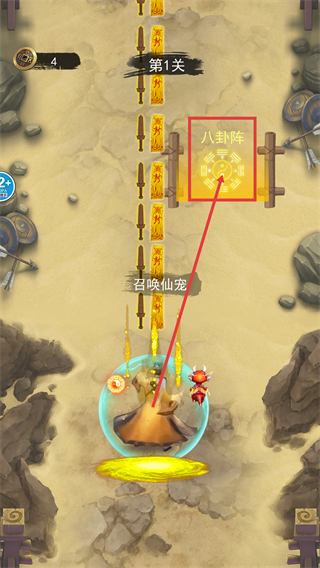 3、解锁【八卦阵】后,可借助其效果增强战斗能力,同时触发【召唤仙宠】助力通关。