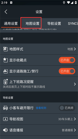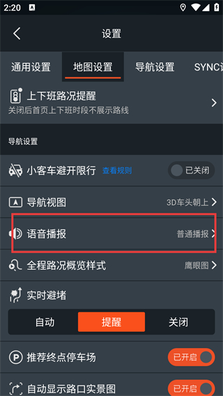 4、地图设置页面,点击红框标注的【语音播报】选项。
