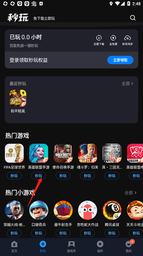 2、点击下方的秒玩后便能够进入到云游戏界面了。