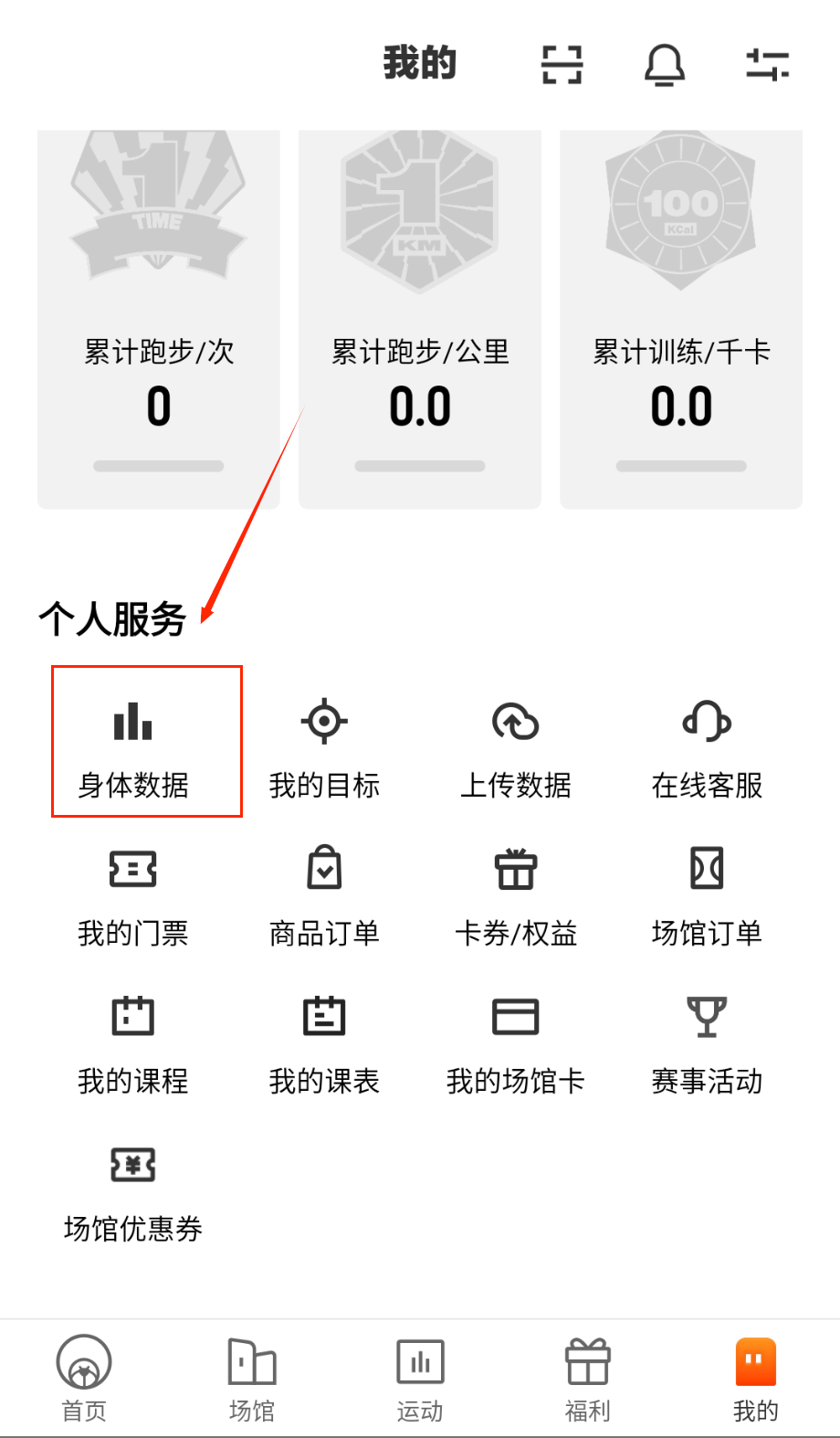 2、接着,在个人中心页面找到"身体数据"选项,点击进入身体档案管理界面,该界面展示用户历史围度记录和健康指标。