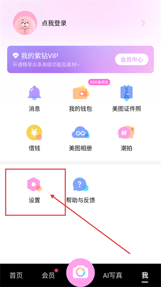 1、在“我”的页面点【设置】选项,能进入设置界面,后续可调整拍照相关的配置啦。
