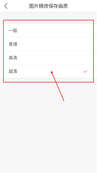 4、进入图片精修保存画质页,能选【一般】【普通】【高清】【超清】,选后就能应用对应画质啦。