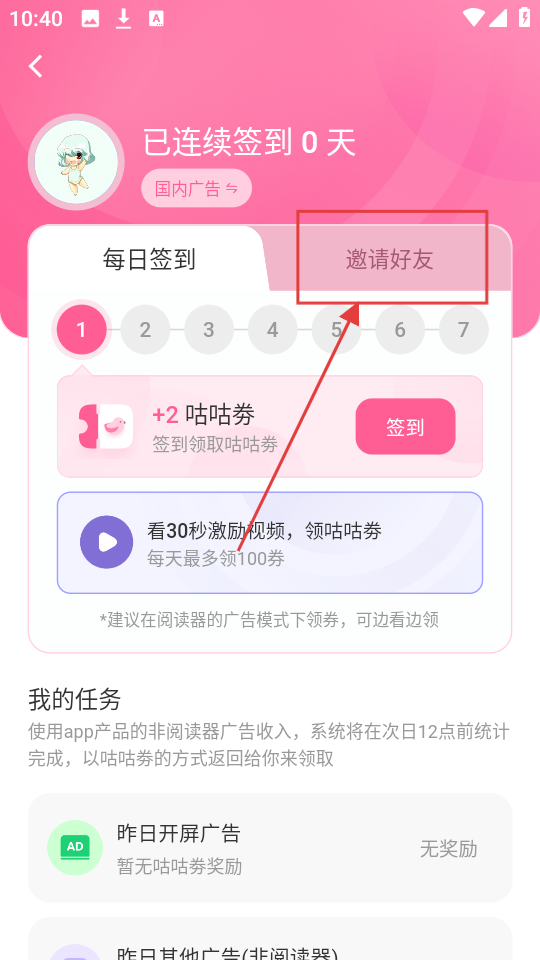 2、在福利页面点击【邀请好友】,就能进入邀请好友界面,获取邀请码啦。