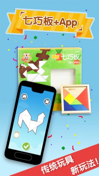 2、木玩拼拼乐游戏的在游戏里,将实物七巧板玩具和虚拟世界进行连接。
