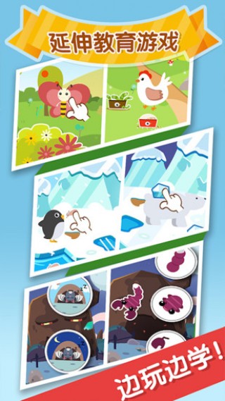 《木玩拼拼乐》 扩展教育游戏完成七巧板后,游戏还没有结束! 通过延伸教育游戏,游戏并未结束,用手里的七巧板拼出对应的动物。手机扫一扫,恭喜你拼出了北极熊、企鹅、小兔子、大狮子、了解动物的基本特征和生活习性,边玩边学,您就可以拯救动物,轻松判断宝宝拼搭结果。