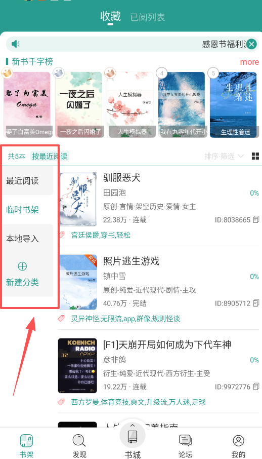 3、管理你的阅读记录也很简单,“书架”里会自动保存你在读的书。你可以创建“书单”分类整理。