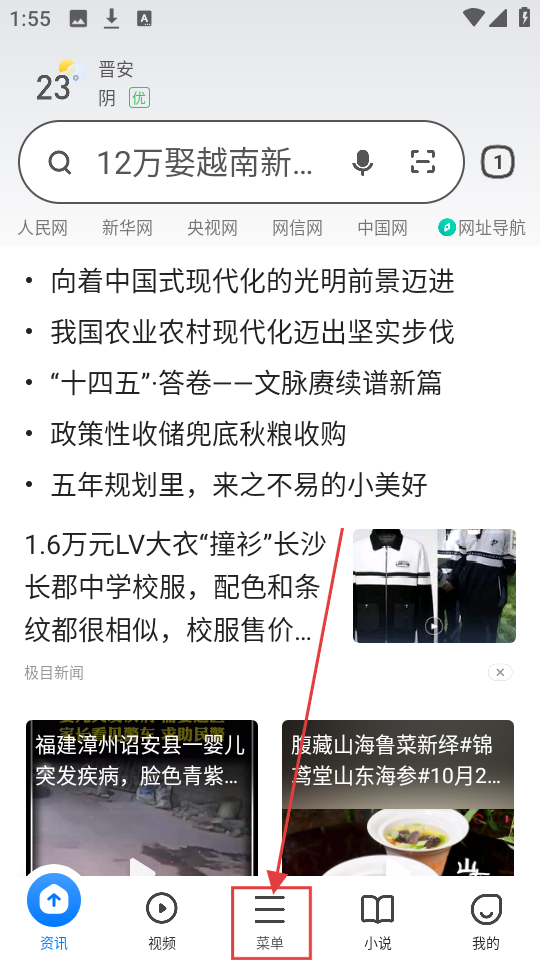 1、打开APP,点击底部【菜单】选项,弹出功能菜单,准备开启无痕浏览啦。