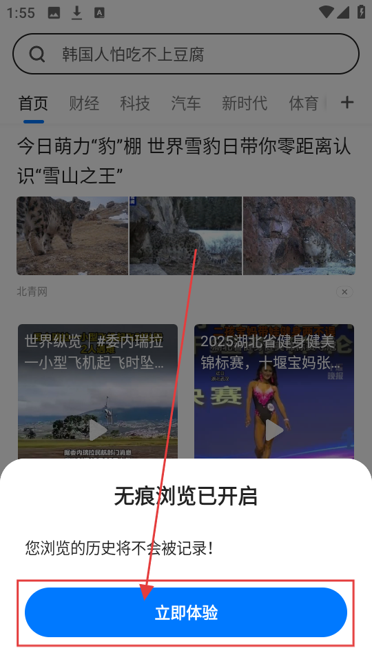 3、在提示框中点击【立即体验】按钮,即可开启无痕浏览模式呢。