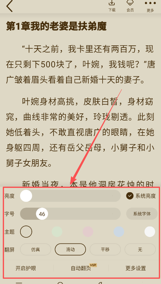 3、深度定制阅读环境很简单,亮度、字号、翻页动画都可随意搭配,特别是46级字号调节,能满足从近视到远视的各种需求。