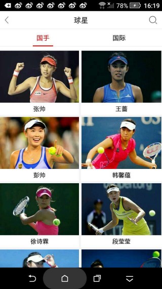 3、展现国家队名单和国家队第一手训练和比赛信息,带给你最专业网球运动。