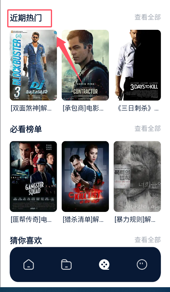 3、近期热门板块反映当前流行趋势,《双面煞神》《承包商》都是近期热议影片。跟上热点不错过好片。