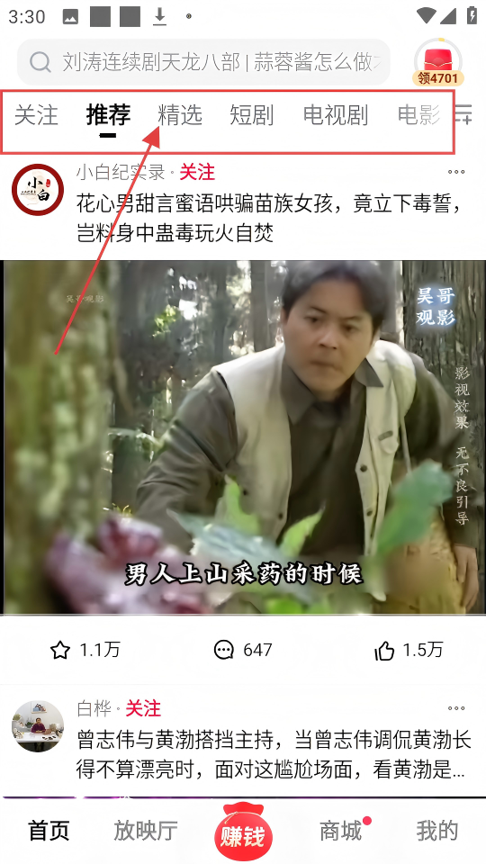 1、在页面上方,有【关注】【推荐】等分类标签,点击对应标签,能切换不同内容分类,超方便。