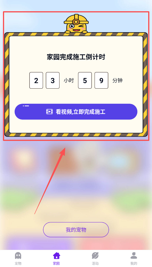四、别忘了经营你的家园,施工期间需要等待,但通过观看视频可以跳过等待时间,早日建成就能更好地展示你的宠物收藏。