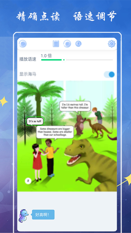 1、多种点读阅读模式,通过语音发音训练,回放,默写,巩固小学生的英语知识。