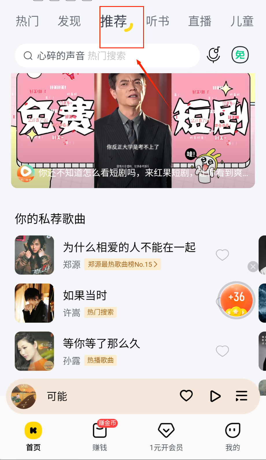 1、打开软件后在首页顶部可以看到多个导航标签,包括热门、发现、推荐等分类,点击推荐标签就能进入个性化推荐页面。