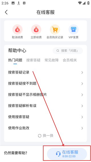 4、在帮助中心页,若仍有疑问,点击底部的【在线客服】按钮,即可联系客服咨询具体问题啦。