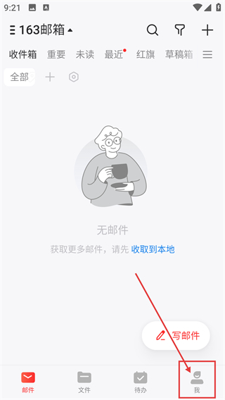 1、在163邮箱的邮件页面,点击底部的【我】选项,就能进入个人中心查看功能入口啦。