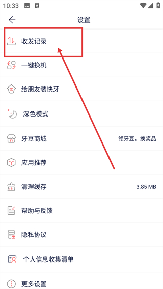 3、在设置页点【收发记录】选项,就能进入记录页面,查看文件传输的历史信息啦。