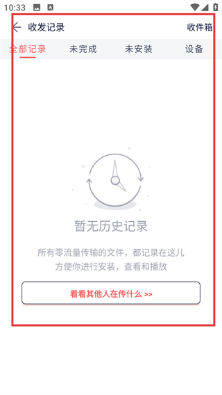 4、进入【收发记录】页后,能看到传输记录状态,暂无记录时还能点按钮看他人传输内容哦。