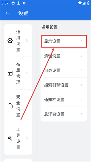 2、进入设置页后,选【显示设置】,能进入显示相关的配置界面,调整界面显示规则啦。