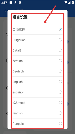 4、进入语言设置后,能看到多种语言选项,选对应的语言就能切换应用的显示语言哦。