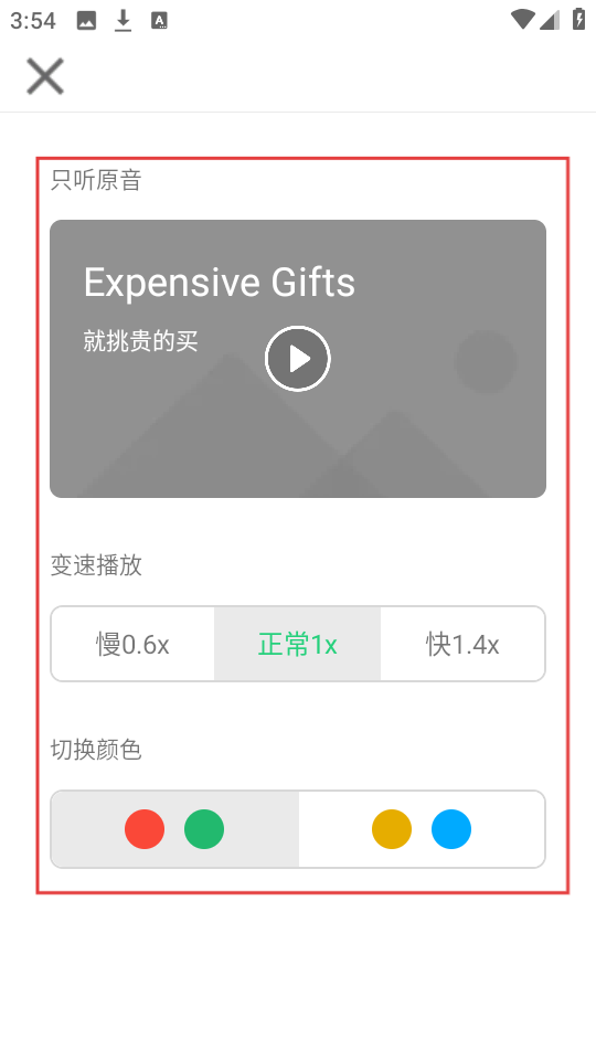 4、若要调整学习内容的播放或显示设置,点击右上角设置图标,可设置播放速度、颜色等。