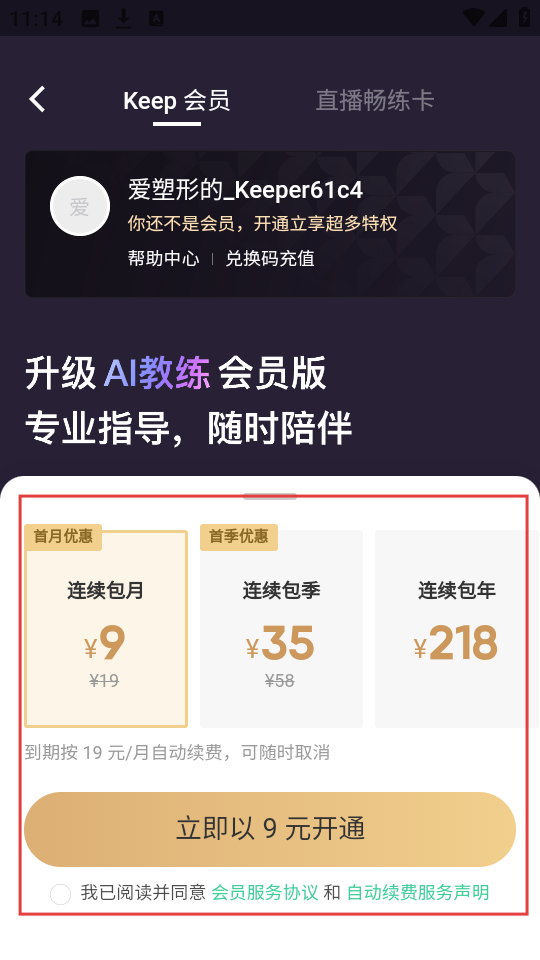 4、若课程需会员,会进入会员开通页面,选好会员套餐后,点击开通按钮,便可开通会员啦。