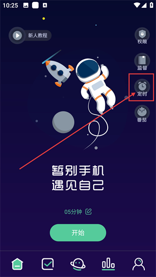 1、在应用首页,点右侧【定时】选项能进入定时功能页,可开启定时禅定相关的设置哦。