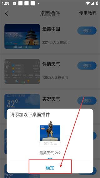 4、触发添加后会弹出插件预览弹窗,点击【确定】按钮,就能完成桌面插件的添加啦。