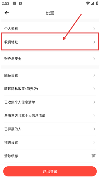 2、进入设置页后,点击【收货地址】选项,就能进入我的地址页面,管理收货地址信息哦。