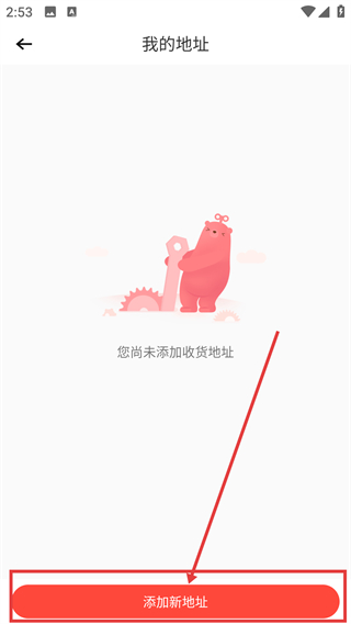 3、在我的地址页点击【添加新地址】按钮,就能进入新增地址页面,准备填写收货信息啦。