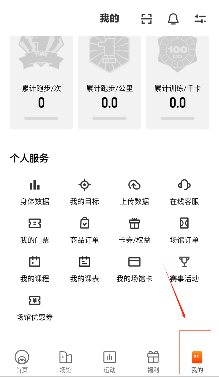 1、打开乐动力APP后首先浏览主界面显示的运动数据概览,然后将注意力集中在右下角的用户中心入口位置。