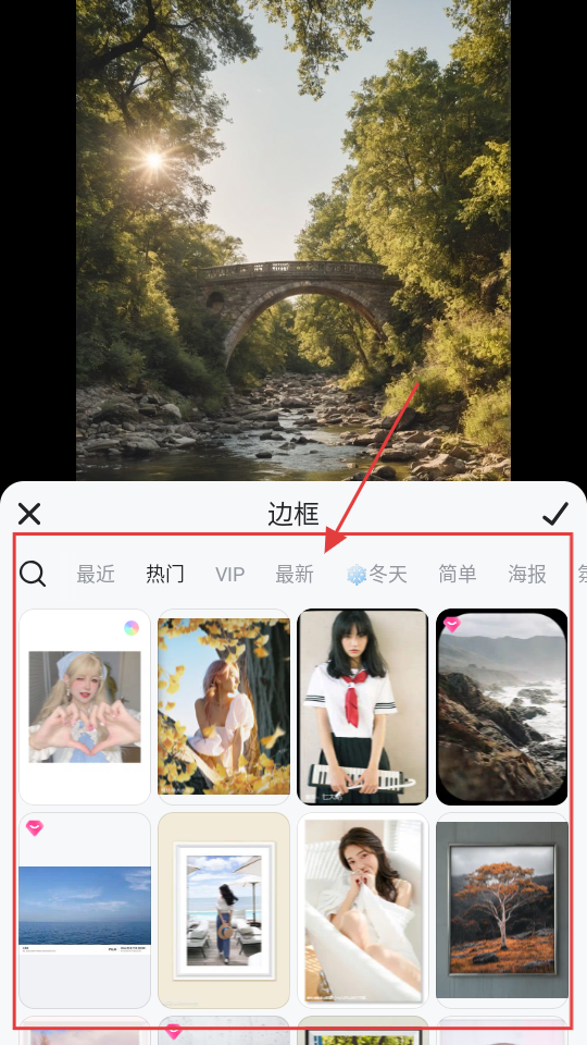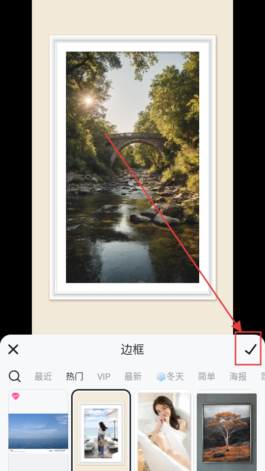 3、选好边框后,点击右下角【对勾】按钮,就能确认应用该边框啦。