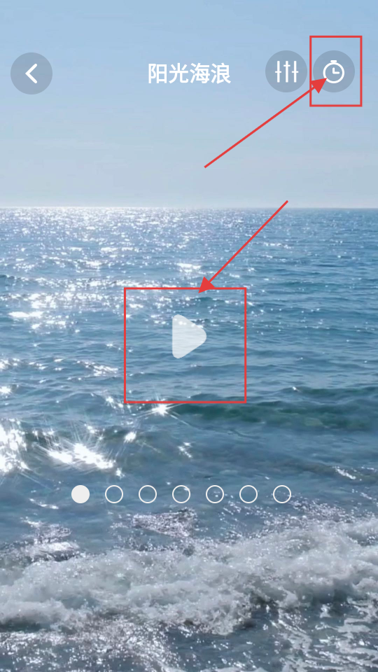 3、在【白噪音】页面,点击播放按钮可播放内容,点击定时图标能设置定时关闭等操作。