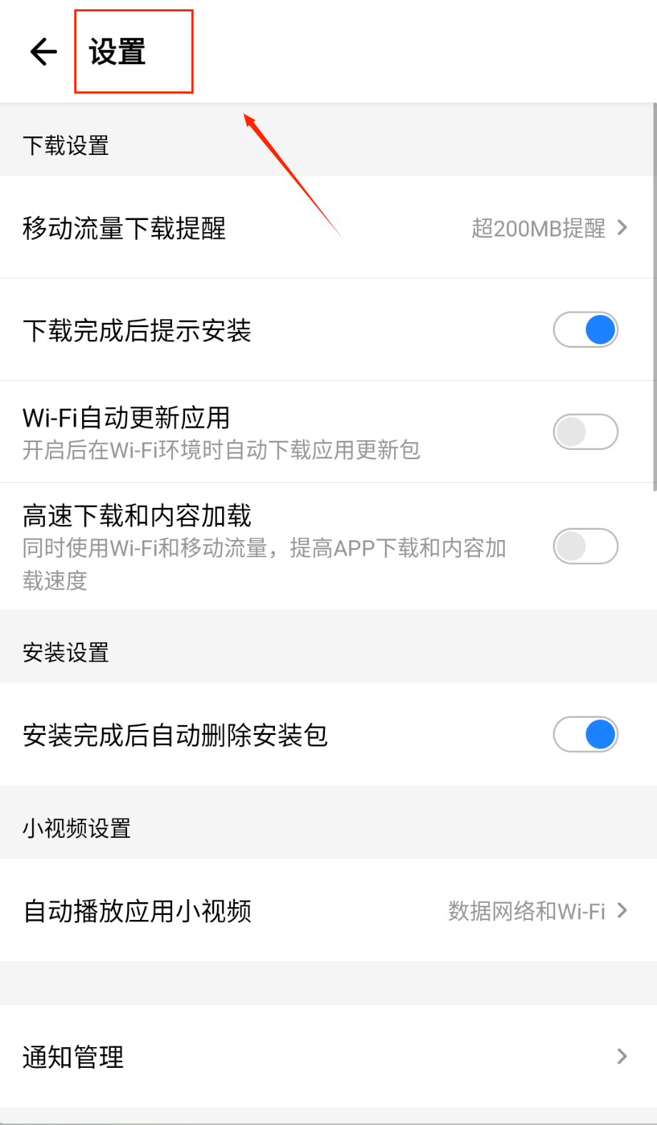 5、在手机设置里面找到“应用宝推荐”将其打开,如图所示