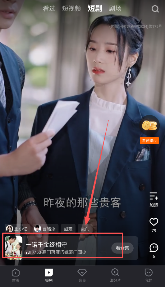 3、短剧频道里有“一诺千金终相守”这类主题明确的剧集,右下角会显示全集数,点击“看全集”就能一次性解锁剧情。