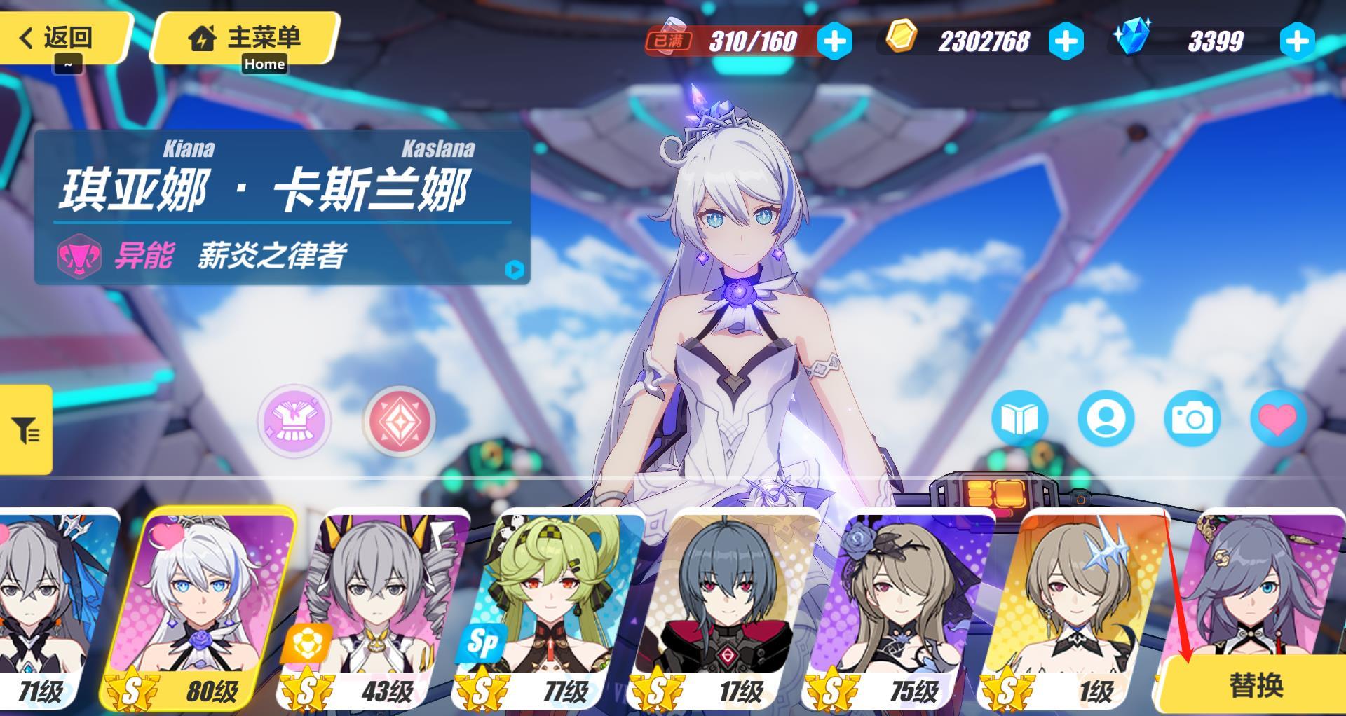 4、点击替换后就可以将主页的女武神替换为玩家想要的女武神了。