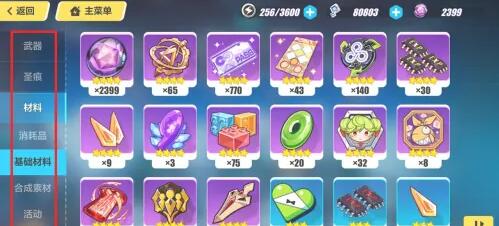 “装备”即为崩坏三的背包系统